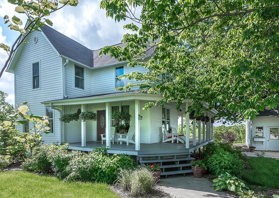 A piece of heaven is waiting for you in gorgeous Madison County! This truly unique 103 acre farm is secluded, but just a short 25 miles from Jordan Creek area. On the expansive acerage sits a completely renovated 1890 farm house with a wrap-around porch and an over-sized, two story, two car. detached garage. Inside you'll discover not one, but two living rooms. Cooking meals is a delight in the large country kitchen. The dining area overlooks a 3 acre pond on the beautiful property. The partially finished walkout basement was designed to be used for a future family room and includes two bedrooms and a 3/4 bath. Upstairs you'll discover two large bedrooms and a bathroom that are bathed in sunlight. Large south and east facing windows capture the sun and overlook twenty tillable acres, forty acres old timber, and forty acres of pasture and a two-acre prairie restoration. Beautifully landscaped. Deer, turkey, and other wildlife. Three-acre pond stocked with mature bass, catfish and crappie. Large garden and orchard. All buildings are Morton Buildings and include the two story garage. large barn with heated tack room, a machine shed and two small lean to sheds. I-35 schools with 97% graduation rate. Rural water. Sustainably farmed for twenty years. Warning: You will fall in love with this property. Call the property owner for a showing today!! Zillow estimate is based on house and garage only without consideration of the value of the farm land or outbuildings.