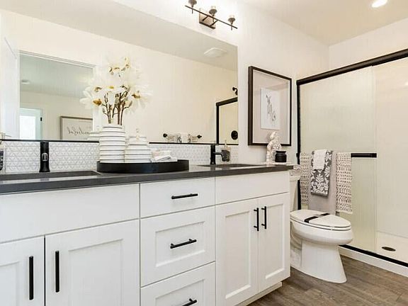 - Breakfast Bar, Ceiling Fan(s), Fiberglass Stall Shower, Linen Closet, Shower/Tub Combo, Smart Thermostat, Solid Surface Counters, Walk-In Closet(s)