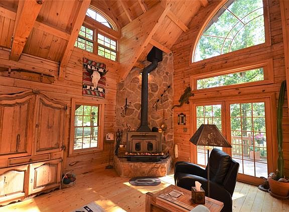 Country retreat? Bed & Brfst? Mini Farm? You decide! This magical one of a kind Luxury home is sure to impress! Built from White Pine Logs this home has 3 Bdrm's, 3 Full Baths and finished walkout LL with over 3,554 sqft of living space. It sits on 20 acres & includes a stocked 1+ acre pond and 50'x60' Barn with living quarters. 12 acres are in hay with an irrigation system. There is an established orchard, fruit trees, 5 acres of woods and a creek. Inside you'll be welcomed in by the vaulted GR with an expansive wall of windows & a wood burning stove with stone surround. The open floor plan has a view in every direction with lots of natural light. The Kit has customs cabinets, center island with brfst bar and a 2nd oven. Enjoy the vaulted sun room year round! Have your MBR suite on the main level or upstairs in the loft area with large sitting area & huge walk in closet. The walkout LL has a Bdr, Full Bath, Wet Bar and FR. Well maintained and a piece of paradise! A MUST SEE!