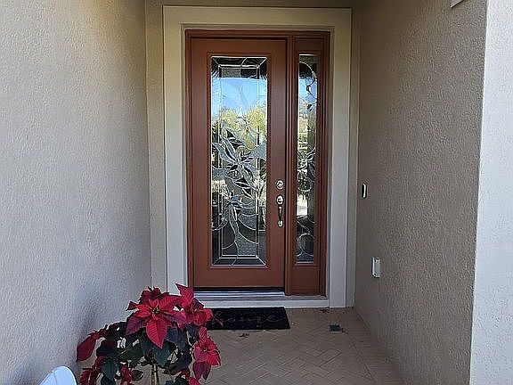 Salt water poolUpgraded custom glass doorLarge foyerCustom shutters throughout