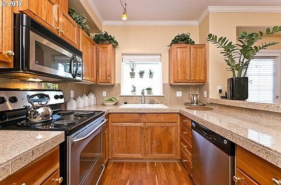 One level condo, centrally located by shopping, waterpark, and library. 3 full beds and 3 full baths, each with large walk in closets, and two separate decks spaces to enjoy the common areas and park views. Secluded penthouse level. Located in Wilsonville schools. Home features upgraded tile floors, Cherry cabinets, hardwood, granite, stainless steel appliances, vaulted ceilings with 2 car attached garage and interior stairs to unit.