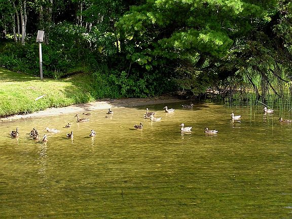 Nestled among the pines & hardwoods, you will find this 3 BR, 2 full bath year round chalet style home featuring a freestanding gas fireplace in the living area that can be enjoyed from the kitchen area as well. The loft area is open with vaulted ceilings, and has a balcony overlooking the back yard. The lower level walks out from the family room to a screened in porch which leads you to the private wooded and landscaped grounds with perfect elevation and a sandy beach. The wrap around deck provides the ideal view point to capture the sunsets and perennial gardens. Detached double garage and paved drive round out this exceptional lake property.