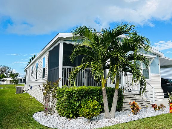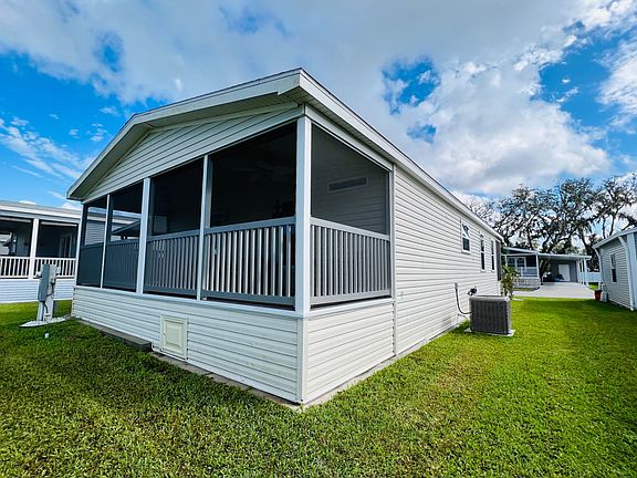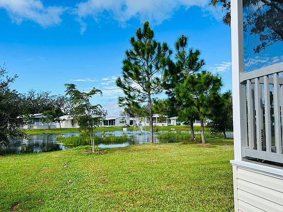 1 Month Free Lot Rent!!! This lovely home is centrally located in the peaceful and beautiful 55+ community of The Oakes at Colony Cove, two lots from the swimming pool. This home has many special features, three bedrooms one of which could serve as an office/den with double doors, two bathrooms, two screened lanais that each have ceiling fans, and a beautiful view of the pond and fountain from the back lanai, plus a two-car carport and shed. The kitchen is large with a pantry, a breakfast bar, and a nice dining room to the side. This house comes equipped with an indoor laundry with a top-brand washer and dryer. Enter the master bedroom through double doors and enjoy the relaxation of the view outside and the calming effect of the ceiling fan. The walk-in closet has extra racks allowing you plenty of room for your personal items. The master bathroom has double sinks with a walk-in shower and is enclosed with a barn door. The guest bedroom is located at the front of the house and has a ceiling fan. The guest bathroom is conveniently located next to the bedroom and has a bathtub. A special feature is a Wi-Fi thermostat which is operable by your phone and Alexa. Enjoy your morning coffee on the front lanai as your neighbors stroll by, and your evening cocktail on the back lanai enjoying the water view while the sun sets. Back patio furniture now included with sale. Grill your favorite meals in the patio which faces the water in the backyard. Colony Cove has five community halls, six heated swimming pools, a private marina, a beautiful pavilion located on the Manatee River, shuffleboard courts, pickle ball courts, tennis courts, fitness centers, two dog parks, a garden park, many clubs and activities to keep you busy throughout the year. Colony Cove is in Ellenton and is located very near Tampa Bay, St. Petersburg, Clearwater, Bradenton, Sarasota, and your choice of many beaches nearby. Lot rent for this property is currently $897.35 (is subject to change) with additional charges for water/sewer, trash, and taxes (approximately $153 a month). All listing information is deemed reliable but not guaranteed and should be independently verified through personal inspection by appropriate professionals. Integrity Mobile Home Sales cannot guarantee or warrant the accuracy of this information, measurements, or condition of any property. Measurements are approximate. Lot rent is subject to change.