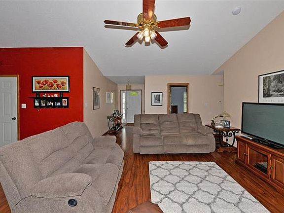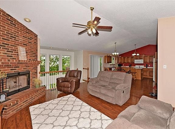 Attractive well maintained atrium ranch. Great room overlooks the atrium and the warmth and glow of the brick wood burning fireplace can be enjoyed throughout the open living space. Features four bedrooms, two full baths plus a spacious finished lower level. Special amenities include open floor plan, vaulted ceilings, bay windows and two story atrium. Kitchen decor includes raised panel oak cabinets complimented with neutral counters with matching edge oak trim. Center island with breakfast bar and pantry cabinet. Master suite is spacious with vaulted ceiling, fan, bay window and walk-in closet. Adjacent bath is complete with granite tile flooring, a vanity, whirlpool garden tub and separate shower. Lower level includes a family room with patio walkout and bedroom. Set on a .35 acre lot with a vinyl fenced yard, inviting deck and covered patio. Newer roof and three-car garage.