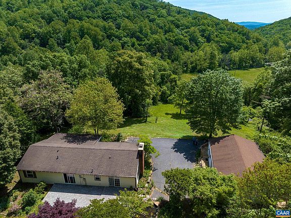 Escape to your mountain oasis just 30 minutes to Charlottesville! This comfortable 3 bedroom 1,1/2 bath ranch style home with a large dining, living and bonus room tucks perfectly into the spectacular property. It will be hard to pick a favorite place to enjoy your private retreat. The screened porch on the front is perfect for catching summer rain storms. The massive stone patio on the back is nestled into the hillside with a beautiful koi pond and carefully curated gardens designed to delight all year round! The large detached garage and finished studio space boast spacious decks and a secret garden space. Additional storage is provided by a sturdy carport and a large shed. Enjoy the seclusion this property provides with the option to stay connected or work from home with high speed internet! Located just minutes to Maybell's Market, Blue Ridge School as well as a few local vineyards.