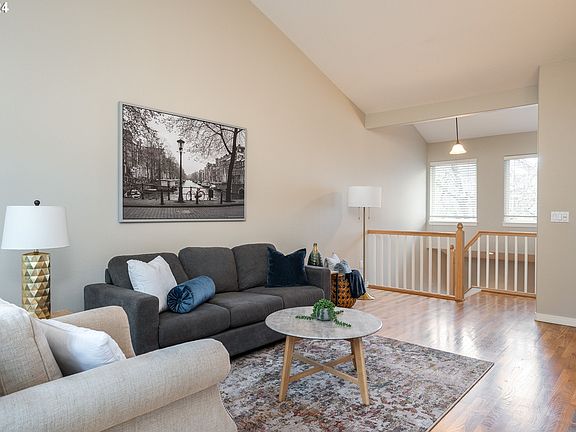 You will fall in love with this contemporary townhome in the sought after location of Hidden Springs Ridge in West Linn. Light, bright and open with tall ceilings! The natural greenspace in back provides privacy and a feeling of tranquility. Built-in desk and reading nook add to the appeal. Gas Fireplace in the living room and hardwood floors on the main level. Fresh interior paint. Refrigerator, Washer and Dryer are included. Just minutes to schools and shopping, with easy freeway access. Move-in ready!