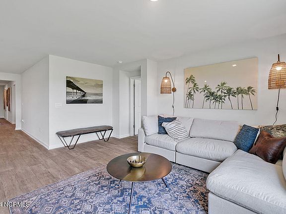 Waterside in the beautiful coastal town of Surf City presents the Cali. The Cali is our most popular one-story, 4-bedroom home, featuring an open-concept living area that leads to a kitchen equipped with Stainless Steel Appliances, including a smooth-top electric range, microwave, and dishwasher. As you enter, you'll find three bedrooms with a shared bathroom, while the Primary Bedroom, off the living area, offers a private ensuite bathroom and large walk-in closet. This home combines a functional layout with quality finishes, making it a great choice for those seeking a modern ranch-style design. Waterside Amenities include a swimming pool, clubhouse, fitness room, firepit, play ground, multi-sport court, sand volleyball and walking trails throughout the community. The white sand beaches and the beautiful bluish green waters of the Atlantic Ocean offer a perfect combination of adventure and relaxation. An almost year around mild climate means you can enjoy the warm salty air and all that the area offers year-round. Your new home at Waterside is less than a mile to the new high-rise bridge with a pedestrian lane where you will have sweeping views of the Atlantic when you are at it's crest. Waterside is an easy drive to Wilmington and Marine Corps Base Camp Lejeune and all of the conveniences are nearby. Home Is Connected® Smart Home Technology is included in your new home and comes with an industry-leading suite of smart home products including touchscreen interface, video doorbell, front door light, z-wave t-stat, & door lock all controlled by included Alexa Pop and smartphone app with voice! The photos you see here are for illustration purposes only, interior and exterior features, options, colors and selections will vary from the homes as built.