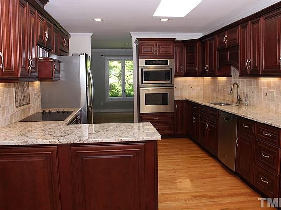 All Brick Ranch with 3 bedrooms, 2 1/2 baths on nearly one acre in North Raleigh neighborhood. Kitchen recently updated with new appliances and huge walk in pantry. Hardwoods in main living areas. Sunroom overlooks private backyard. Family room with wood burning fireplace. Mud room off kitchen leading to garage. Multi tiered deck. Great floorplan. Close to I-540, RDU, RTP, and Falls Lake. Property septic is permitted for four bedrooms, room to expand!