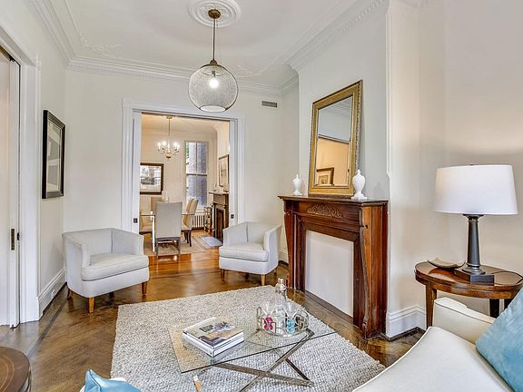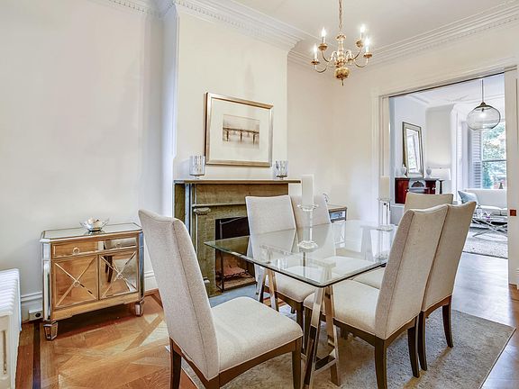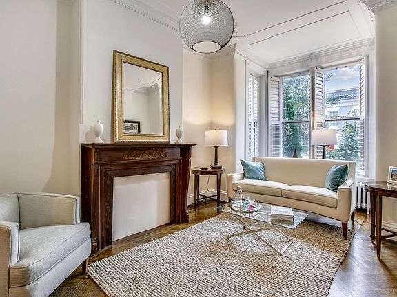 Discover this lovely and serene 3-bedroom and 3-bathroom home, perfectly situated on a quiet one-way street in Georgetown. This three-level brick row house with 2,100 square feet (est.) retains the elegance of the time it was built in 1900, including hardwood floors throughout, with modern updates. The first floor features a graceful foyer, a light-filled living area with original crown molding and a separate dining room with fireplace. The updated kitchen includes granite countertops, a Viking four-burner gas range, and sub-zero refrigerator. French doors lead to a peaceful, tiered-flagstone terrace. Upstairs are two bedrooms, including the primary suite with a large alcove with windows, perfect for a desk or sitting area and a walk-in closet. Also upstairs are two renovated bathrooms, including one with a stand-alone bathtub plus tiled shower. The lower level has space for a third bedroom or bonus room with a full bath, including steam shower. In addition, there is a washer/dryer unit in a separate closet. Located in Georgetown's East Village, surrounded by beautiful historic homes; blocks from grocery stores, shopping and dining as well as Montrose park and its public tennis courts. Street parking available. Renter pays all utilities. Pets accepted with restrictions.