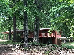 Easy walk to the water access comes with this 4 BR 3 BA home on 13 aces m/l. Includes dock slip with lift in a 4-stall dock with swim platform. Home features a large living room with fireplace and 2 BR 2 BA on main floor with 2 BR 1 BA and den in basement. Shed for storage or workshop. Acreage is mostly wooded. Partial lake view from home. Located on beautiful Bull Shoals Lake in Northern Arkansas! 40 minutes to Branson Missouri! Neat home/acreage/dock slip package in the heart of the Ozarks! Great property for a permanent residence, second home, or vacation rental. Properties like this one are getting harder and harder to find. Come check it out before it's too late! All numbers approximate. Age and construction date is an estimate.
