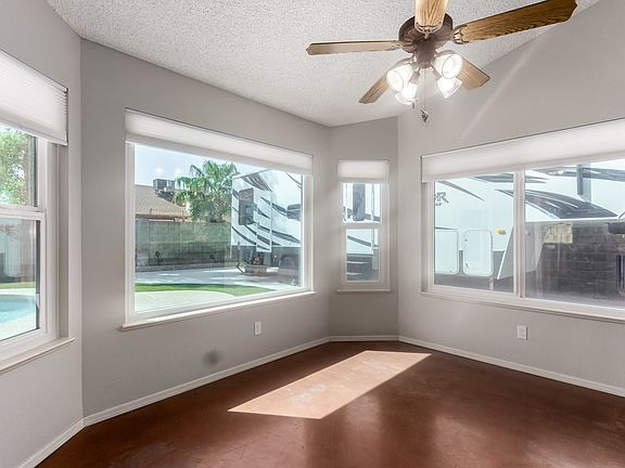 Home, sweet home! This beautiful 3 bed, 2 bath residence in Vista Mesa is looking for you! Great curb appeal, a manicured low-care landscape, 3 car garage, and an RV gate are just the beginning. Inside you will find a spacious dining & living area w/vaulted ceilings, concrete flooring, neutral palette, and a fireplace to keep you warm & cozy. The gourmet kitchen is equipped w/ample wood cabinetry, stone counters, SS appliances, mosaic tile backsplash, dazzling light fixtures, and a breakfast nook. You'll love the primary bedroom, boasting soft carpet, a walk-in closet, and a private ensuite w/dual vessel sinks & a sliding barn door, plus direct outdoor access! Lastly, the wonderful backyard includes a covered patio, artificial turf, and a diving pool! Don't miss out! 12-18 months Call for more info