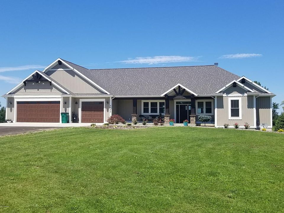 Serenity of country living! 2.17 acres, attached 40x66 fully insulated and drywalled barn. The main floor offers an open concept living, dining and kitchen area with granite countertops, stainless steel appliances and walk in pantry. The master bedroom and private bath with granite countertops, soaking tub, and separate shower/toilet room are also found on the main floor along with a secondary bedroom and private bathroom. The fully finished lower level offers an additional three large bedrooms.There is a jack and jill bathroom shared by two of the bedrooms and an additional bathroom for the third bedroom. The basement also features a kitchenette with granite countertops, stainless steel fridge and microwave, family room and playroom.
