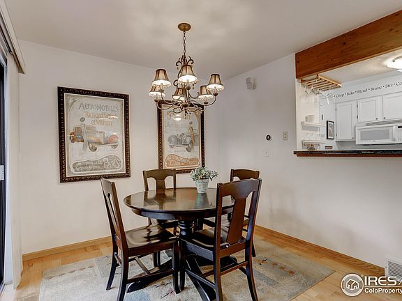 Great corner unit townhome with 2 bedrooms and 2 baths. Walking distance to parks and trails, with easy access to the Diagonal Hwy and Foothills Pkwy. This townhome in Woodridge features plenty of light, hardwood floors, a wood deck, walk in closet, and a gas fireplace. This unit has plenty of storage including a large one car garage. The deck backs to community common area with mature trees. Central A/C and new Nest thermostat installed.