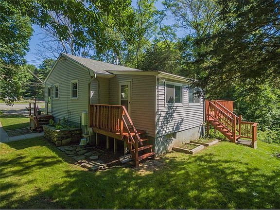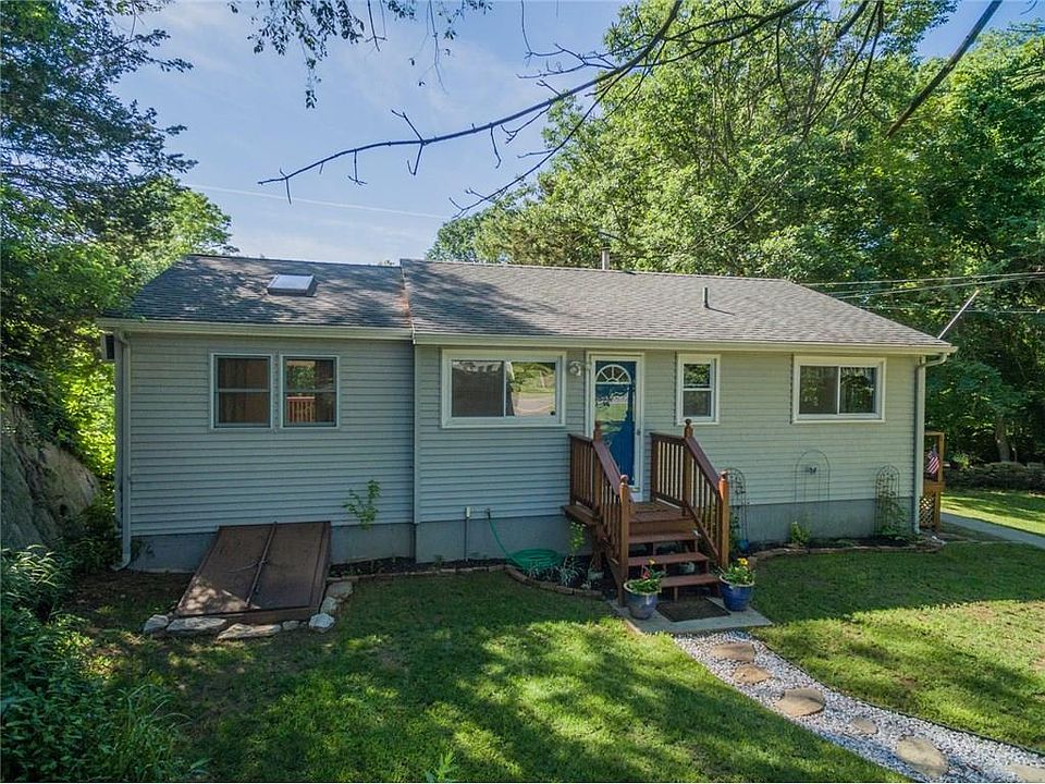 Warm and Inviting Ranch with wood floors throughout much of your home! Your Great room has sky-lights and a cathedral ceiling flooding the room with natural light. Sliders open to large party deck over looking your private oasis. The Newly Remodeled Kitchen is bright and airy with many windows and a ton of cabinets. The master bedroom is spacious with gorgeous hardwood floors and a full bath with granite counters laundry and a dressing room or office area has its own door to the yard! House is set back from the road and is easily missed when driving. Less than 3/10 of a mile to Old Mystic General Store Great location close to old Mystic center and river road for kayaking and relaxing biking and runs. Just out side of the seasonal high traffic but close enough to enjoy