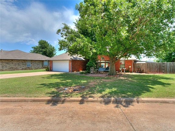 Home sweet home is calling your name with this gorgeous, double lot taking up almost half an acre. Has a new roof and guttering.Neighborhood is full of mature trees providing shade & traditional charm. Floorplan is incredibly functional whether an individual or raising a family. Living room is spacious with breathtaking, bricked fireplace in the corner. Dining area is just off the kitchen making entertaining guests easy. Kitchen is a chef's dream with endless counterspace and tons of cabinet storage. Entire home is full of natural light from numerous large windows. Every bedroom is spacious with great sized closet. Sunroom off the back of the home provides an escape to be used for an office or toy room! Home has several outbuildings including one with a garage door. Entire yard is fully fenced making this double lot easy to manage. Outdoor storm cellar provides peace of mind from Oklahoma storms. With easy highway access, it's easy to call HOME~