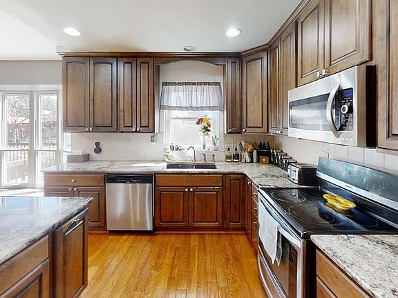 Beautiful tri level with an added bonus room/bedroom (non conforming) on a lower fourth level. Amazing mountain views on 1/2 an acre with a large back yard, patio and plenty of room for R/V storage. Main floor living room and lower level family room allow for separate entertaining. The kitchen has custom cherry cabinets with pull out shelves and two pantries, granite countertops and an island with bar seating. A large bay window in the dining area allows for tons of natural light. The back yard is ideal for entertaining with stone patios with a fire pit, raised garden beds and a private patio. The attached 2 car garage has storage behind plus there is a 9'10 x 20'2 "She shed" that could be used for additional storage or hobbies. Seller intends to clean up landscaping, remove damaged fence in back yard and fix siding.