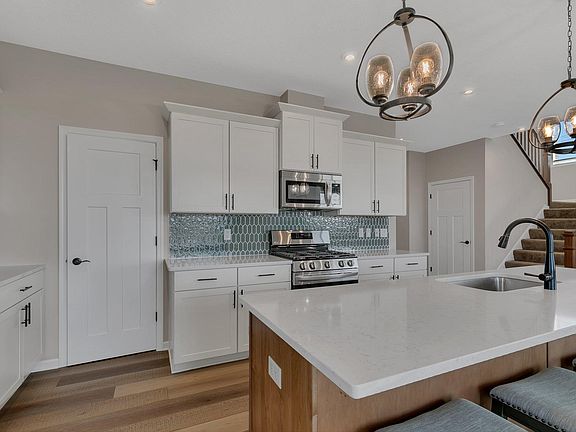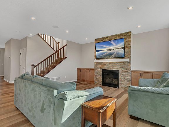Enjoy this Tisbury Model, that is loaded with upgrades! Main floor features expansive living space, front office/flex room with accent wall, and a huge mudroom off of the enormous oversized 4 stall garage! The kitchen features quartz counters, stainless appliances, walk in pantry and a giant island to gather around! Open concept layout includes the living room with gas fireplace with beautiful stonework. The upper level is sure to impress with 4 of the 5 bedrooms on one level, including the spacious Primary Suite with soaker tub and glass surround shower, dual sinks and huge walk in closet! 3 more generous bedrooms in the upper level, as well as second floor laundry and a loft area! The walkout lower level is perfect for hosting the big game with a wet bar and large family room! Enormous 5th bedroom in the lower level as well! Centrally located with easy access to highways, vinyl fence in the back yard, and loads of tech upgrades (See supplements). You will love this home!