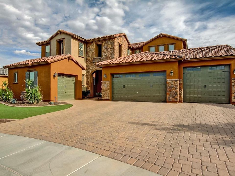 Welcome to the Gated Community of Lehi Crossing! Magnificent Estate Style Home with 4 car garage and meticulous landscape. INCREDIBLE MOUNTAIN VIEWS! High-end finishes, designer touches, crown moulding, plantation shutters, and beautiful tile floor. Warm & welcoming palette, upgraded lighting/ceiling fans, plush carpet in all the right places, and patio access through the oversized glass slider from great room. Stunning chef's kitchen features center island, granite counters, marble tiled backsplash, breakfast bar, SS appliances, pantry, and plethora of wood cabinetry with hardware. Perfect gathering place for family and friends. Master retreat on first level with patio access and private en suite. Charming loft area and built-ins. TURF front and back yard! Bonus game room!! Will NOT Last! This gorgeous home backs community reserve and is in a SPECTACULAR location. It probably has the best views in the neighborhood- picturesque views of Red Mountain and Four Peaks! It's breathtaking!!