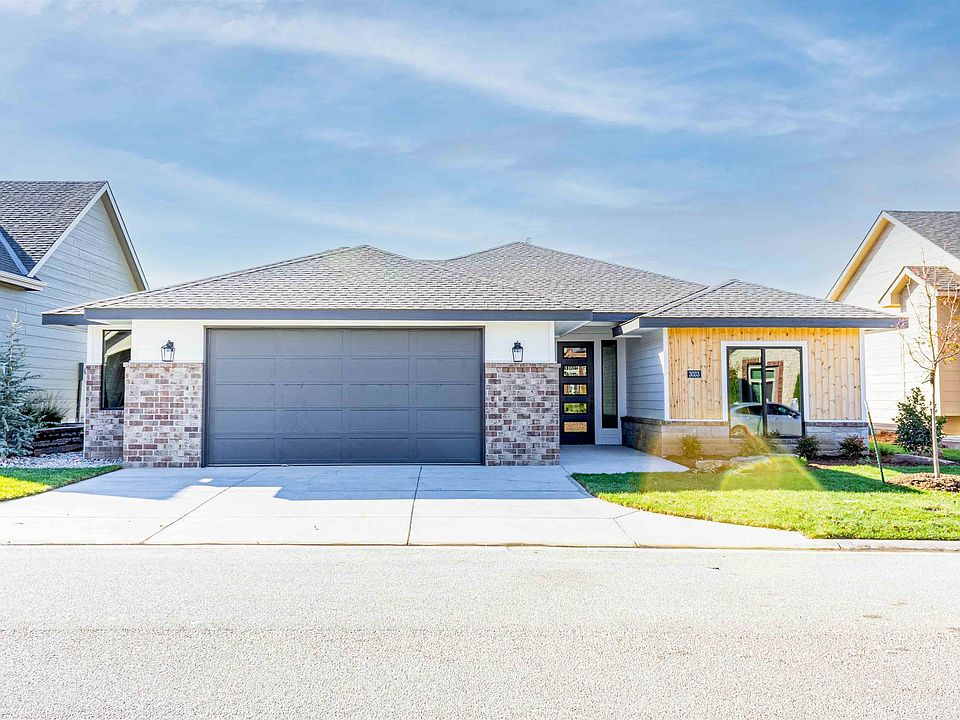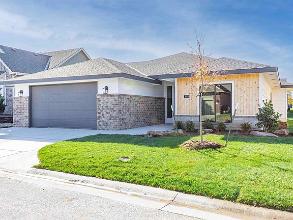 This 1753 sq ft home is ideal for those who don't want any steps! You will enjoy the zero entry from both the front and garage entrances. Spacious kitchen, sizeable island, large walk-in pantry, living area with beamed ceiling and electric linear fireplace, dining area offers access to the covered patio equipped with a gas fireplace, master bedroom with 6" crown molding and 10" tray ceiling, ensuite with double vanities, under cabinet motion lighting and fully tiled shower make this 3 bed, 2 bath home ideal for today's homebuyer. Fontana offers a zero-entry pool with splash pad, playground, walking paths and lakes. It's also minutes away from New Market Square for all your shopping and dining needs. A $175 mailbox key fee is collected at closing. SPECIALS PAY OUT IN 2025, LOWER TAXES AND MAIZE SCHOOLS. All information deemed reliable and not guaranteed. Open daily from 1-5.