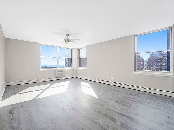 Modern sun-drenched east facing 2 bed 2 bath condo with stunning lake view, perfectly situated in the vibrant East Lakeview neighborhood. Beautiful vinyl flooring and fresh neutral paint throughout, the open floor plan includes a spacious living area, a separate dining space, and a versatile nook perfect for a home office. The updated kitchen features white shaker cabinets, granite countertops, backsplash and stainless steel appliances, making it ideal for both everyday living and entertaining. In-unit laundry can be easily installed in the oversize cabinets. The spacious primary bedroom includes two closets, providing ample storage, and en suite bathroom. Heat, cooking gas, cable and water are included in the rent. Pets friendly. Rental parking option available in a nearby garage. Building amenities include a rooftop deck with 360-degree views of the lake and city, common grills, seating areas. Card operated laundry room, storage lockers, bike storage, exercise area and on-site building engineer. Located just steps from Lake Michigan, parks, dining, shopping, and public transit, this property provides easy access to everything East Lakeview has to offer.