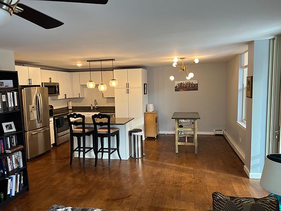 Stunning 2BD/2BA corner unit in a remarkable Lakeview East location! This updated home features an open concept kitchen complete with sleek white shaker cabinetry, subway style backsplash new in 20022, granite countertops, stainless steel appliances, and island w/breakfast bar. The floorplan flows effortlessly to the expansive living room with east and north facing windows ensuring your home will be drenched in natural light throughout the entire day. Private balcony, conveniently located just off the kitchen. Both bedrooms easily accommodate a king sized bed with space for a bedroom set. All of this plus in-unit laundry and covered parking space available. Located in a pet friendly, full amenity building complete with sun deck, work out room, night door staff and is walking distance to the lakefront, restaurants & nightlife, grocery and more! Rent include heat, internet & cable. Available January 1, 2025. Minimal 1 year. Covered parking space available for $150.
