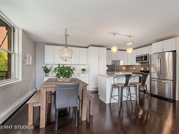 Lake view, balcony, and all NEW within 5 years. this unit shows like a model home. White kitchen with granite counters, stainless steel appliances, center island breakfast bar & built-in desk area for extra storage. The open floor concept between kitchen and living room is perfect for entertaining and on nice days & evenings the balcony provides extra living space. The dark wood floors are a nice contrast to the white shaker cabs. The bedroom is carpeted and has two large closets both finished by California closets as well as a linen and hall closet. There are custom blinds throughout the home, radiant heat and 5 year old air conditioners. The bathroom was also remodeled 5 years ago. Enjoy the roof top deck of the building on warm summer nights. Will not last long so book your appointment today!