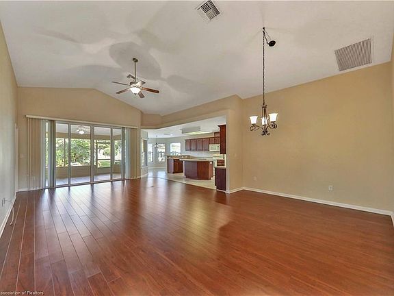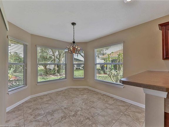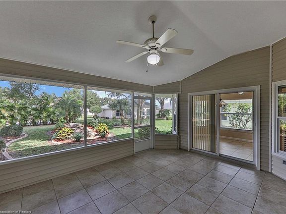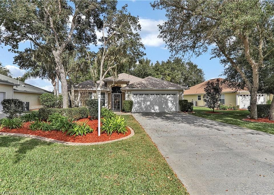 Open concept home located in gated 55+ golf community Highlands Ridge. This home is perfect for entertaining! The large living and formal dining area are open to the island kitchen that includes an ample amount of cabinets, a lovely cafe area, built in desk, and pantry. The master bath includes double vanities with extra storage space, jet tub, and shower. The den includes french doors and has a small closet. The living, master bed, and cafe area all have sliders opening to the tiled screened lanai that overlooks the tranquil fountain in the backyard. Upgraded landscaping includes the rock fountain and curbing. The garage includes a Skeeter Beater and the attic area above the garage is completely decked for additional storage space! New roof in December 2019. A/C, garage door opener, well pump and irrigation all new in 2017.