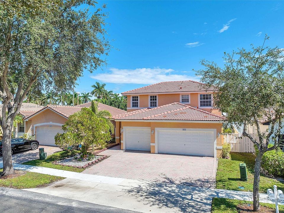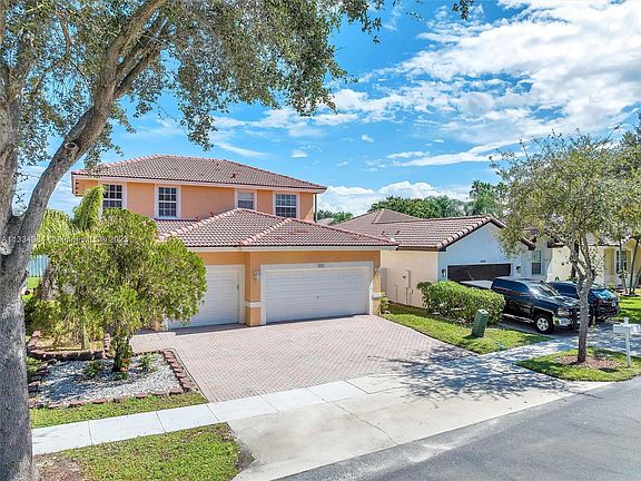 Beautiful and spacious single-family home in the desirable Monarch Lakes development in Miramar. Soaring two story high ceiling as soon as you enter. This home is very spacious, has plenty of natural light, high volume ceilings and neutral tile throughout the first floor and wood floors upstairs. Great layout for the Living, dining and Family room with an open concept kitchen with new SS appliances overlooking living room. Large master bedroom with hardwood floors and a walk-in closet; master bathroom with roman tub, standing shower, and dual sinks. Split floor plan upstairs. Backyard is completely fenced - in with covered siting area great for entertainment. Close to highways I-75 and Turnpike, shopping stores and malls, Great schools, and recreation parks.