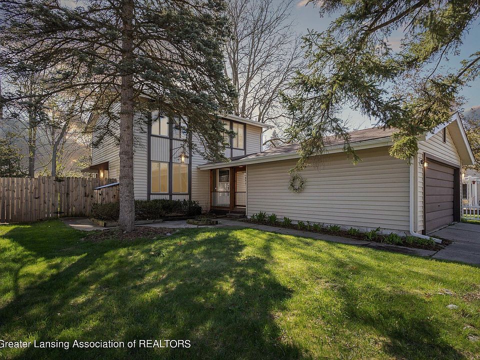 Welcome to 3033 Scarborough Road! This gorgeously loved and maintained, 3 bedrooms, 1.5 bathrooms, two story home, and is located in the ideal neighborhood of Glen Eden Estates in Lansing. Within a quick drive or bike ride to MSU campus, LCC campus, downtown Lansing, parks, and all your daily needs. As you enter through the front door, you are greeted with newly installed laminate flooring that carries through the first floor. To the right of the staircase is the light and bright living room with a wood burning brick fireplace and glass sliding door to access the private and fully fenced backyard and patio area. Perfect for entertaining guests! To the left of the staircase is the dining room and kitchen. The kitchen features lots of cabinets and counter space, all kitchen appliances stay with the home, a pantry space, an island with barstool seating, and a second door to access the backyard. Rounding out the remainder of this floor includes an updated half bathroom, closet space, and a covered porch entry to access the detached two car garage. Heading upstairs are the living quarters, with a large primary bedroom that has French doors and a walk-in closet, two additional bedrooms, and a renovated full bathroom. The partially finished lower level has a large rec room, perfect for a playroom, media room, or office space. The rest of the lower level has the utility room which includes plenty of storage, the laundry room, and utility sink. There are so many updates throughout!! This is a must see home, call today to schedule your private showing!