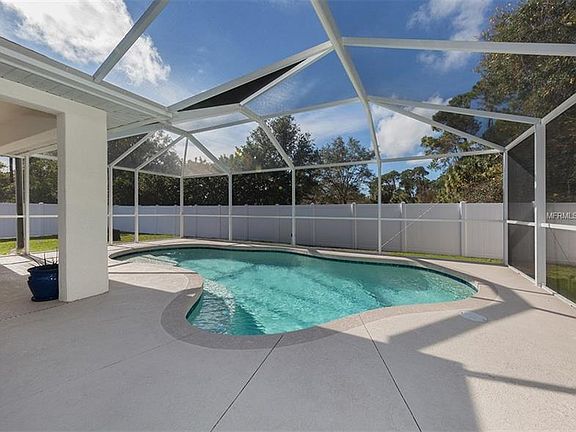 PRICED TO SELL!!! Over $50k in recent improvements! This 2,000+ square foot home features 3 large bedrooms PLUS a den, but the outdoor living space is what will impress you most! The ultimate in luxurious outdoor living with a custom in-ground heated salt water pool with multi-color LED in-pool lighting, large covered screened lanai featuring LED Nebula lights within the cage, and plenty of sunny deck area - perfect for the family and entertaining with friends. All of this on a very private lot with a back yard enclosed by a 6' white PVC fence! This home is strong and solid and worth the value as it has full hurricane protection, brand new A/C, 2-year old stainless steel kitchen appliances, and oversized ceramic tile on the diagonal throughout most of the home. A 22'x6' screened front porch is a relaxing place to enjoy the peace and serenity that surround you. The spacious Great Room is ideal for all of your furniture and the largest TV you can find! The "dining room" and "den" areas are two versatile rooms that could also be utilized as a playroom, home office, or additional living area - there's plenty of space in this house for everyone. The master suite is a spacious and private retreat in this split bedroom home. It features two large walk in closets and the en-suite bath has dual sinks and a tub/shower combo with additional linen closet. This home has it all and you'll see why when you relax from your pool to enjoy incredible sunsets over the magnificent long leaf and slash pines in the distance.
