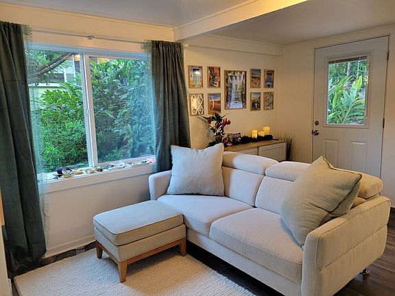 Rarely available one-bedroom for rent in gorgeous Manoa. This unit has a full kitchen, access to a private washer/dryer, and ample storage areas. There is a living room off the kitchen and a down a few stairs there is a large bedroom with a full-sized closet and AC in the bedroom. This unit has the option to be rented fully furnished (as seen in the photos). We are looking for a renter who works outside the home (the reason being that we both work from home and it is important that it is quiet during the day). We are willing to discuss the possibility of allowing pets (depending on the pet), though additional fees may apply. NO SMOKING OR VAPING OR ANY OTHER DRUG USAGE ALLOWED ON PROPERTY. Please contact Abbie for further details. Owner will cover all utilities to include internet (however it the internet is not sufficient for your needs, you will be required to get your own - we have not had any issues with the internet in the past though). Renter will be responsible for any damage incurred. NO SMOKING OR VAPING allowed. Only renter(s) listed on the application are allowed to reside in the rental unit.