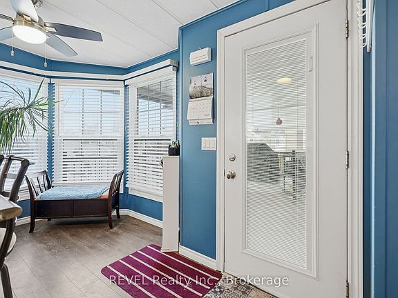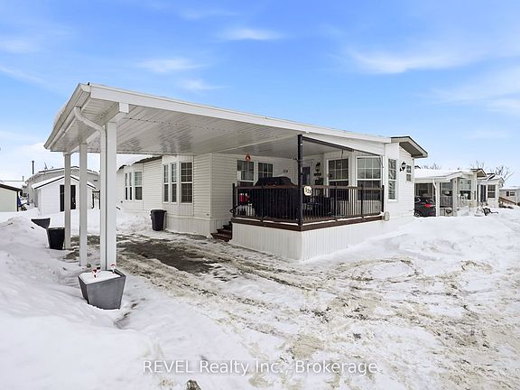 Welcome to your new home. This bright and spacious 1,468 sq. ft. bungalow is located in the desirable Black Creek Retirement Community in Stevensville and has been extensively renovated to create a truly barrier-free living space.Completed in 2019, the exterior features an access ramp to the covered front porch, metal spindles, and a convenient dog gate. Inside, hallway walls have been reconfigured to accommodate most wheelchairs and walkers, with widened doorways (32" hallways and most interior doors upgraded to 34"), low-rise steps, and thoughtful accessibility throughout. The main bathroom was fully renovated in 2019 and includes a barrier-free vanity and a 60" walk-in/roll-in shower.Additional upgrades include newer baseboards, LED lighting throughout, 10mm vinyl plank flooring, and a new thermostat for the living room gas fireplace. One of the larger units in Black Creek, this 2-bedroom, 2-bath bungalow offers elegant French doors to the second bedroom, barn doors to the laundry area, and a 10' x 14' four-season sunroom addition.Outside, enjoy a stamped concrete driveway, carport, additional parking for a golf cart or small car, and a side patio and walkway leading to a shed with hydro. Patio doors from the sunroom provide easy access to outdoor living.All of this comes with access to the community centre, featuring two pools, a hot tub, sauna, pool and billiards, tennis courts, and a wide range of organized activities. Start living your lifestyle today-this exceptional home can be yours.