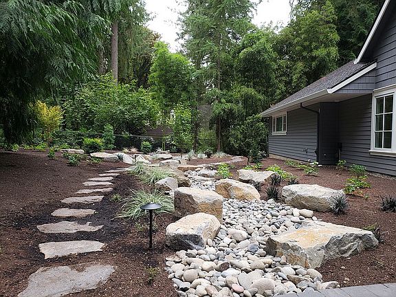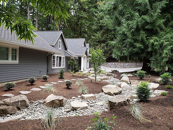 First floor living on a large 1+ acre property with gated entry, security system, large backyard and forest like setting. Complete studs-down remodel in 2015. Main floor master bath with marble floors and walls accented by quartz counter tops and custom cabinetry. A MTI Air-tub, tile/glass shower, Brizo fixtures and an electric Toto Wash-let with auto flush and a self raising/closing lid finish off the beautiful master bath. Huge master bedroom with fireplace, walk in closet and French doors to back yard deck. 2nd Master Suite on main floor. Custom kitchen featuring Granite and Quartz countertops, Bosch appliances (microwave/oven/induction cook top/dish washer and a built-in sub zero refrigerator. Large entertainment area upstairs with 2nd kitchen, 2 bedrooms and bath. Could serve as separate living quarters for Nanny or Mother-In-Law. Great guest quarters. Total Living Area: 5,653 sq.ft. + Oversized 3 Car Garage: 1,100sq.ft. Quiet street with lake easement. Great Lake Oswego schools and close to parks and Bridgeport Village shopping.