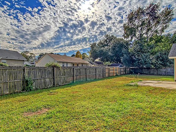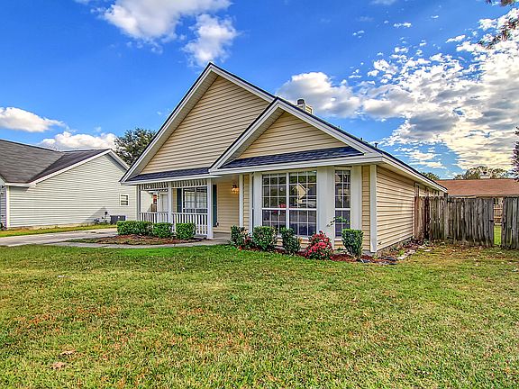 Situated at the end of a cul-de-sac in an established Goose Creek neighborhood, this move-in ready one story home is a ready and waiting for you! This home welcomes you in with a soaring cathedral ceiling in the spacious living room with its fireplace as the centerpiece. Natural light pours into the laminate hardwood floors and the living room joins with the eat-in kitchen that also has high ceilings making it feel especially spacious. There is a closet laundry room in the kitchen and French doors leading to the back patio. The owner's retreat features an en-suite full bath with a walk-in shower, single vanity and relaxing garden tub. The other two bedrooms and full bath are on the other side of the home for added privacy. The fenced-in backyard is really large and boasts a nice size patio area that's great for outdoor entertaining. There is also a storage shed in the backyard. The covered front porch is another inviting outdoor living space. The long driveway offers tons of off street parking and the garage is ready for your vehicle or extra storage space. This home is absolutely move-in ready and you'll love its convenient location to schools, shopping, dining and all the major road ways! Schedule your showing today!Buyer's agent to verify school zoning. If square footage is important please measure.