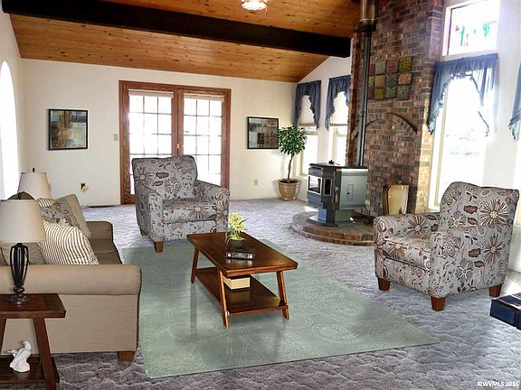 Accepted Offer with Contingencies. SPANISH STYLE HOME OFF RIVERSIDE DRIVE. 2142 sq ft of usable space with 3 Bd/2 Bath, skylights, pellet stove and more. Master suite has French doors leading to private enclosed patio complete w/ hot tub. 2nd covered patio with Spanish arches is ideal for entertaining or secure child play area. U-shaped design surrounds center courtyard. Private well & septic eliminates monthly utility bill. Acreage has green house, shed, sprinkler system and raised garden beds. ONLY 10 MINUTES FROM CORVALLIS.