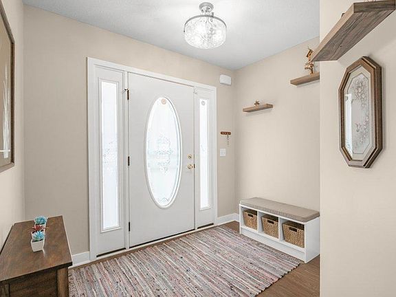 Single-level living at it's finest! This bright and airy home is move-in ready, offering the rare opportunity to live in FoxTail Woods. Enjoy the easy life with the spacious open floorplan, vaulted ceilings, and generously sized bedrooms, with nary a stair to worry about! For extra peace of mind, the utility room was upgraded with reinforced concrete to double as a storm shelter. The sunny backyard with it's 6-ft privacy fence is the perfect place to relax outdoors, featuring a lovingly tended variety of hydrangeas, hostas, peonies, and more! The spacious, fully-insulated garage has plenty of space for all your cars, tools & toys! Enjoy walking, running, or biking on the Sunrise Regional Trail with convenient access just down the street. Perfectly situated between Stacy and Wyoming, you'll love all the local shops and restaurants, or take a quick trip down the road to Forest Lake for even more amenities and access to the chain of lakes. Come see for yourself!