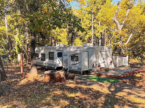 Discover this beautiful, clean, spacious and level piece of land surrounded by majestic oak trees, perfect for camping or a future homesite. The property features a well (unknown condition), active electricity onsite. Included in the sale is a spacious RV with a newly built back deck overlooking the peaceful, private setting. Enjoy a large circular driveway, partial fencing, and plenty of open, usable space for recreation or expansion. A rare opportunity to own a ready-to-enjoy retreat with all the essentials already in place. A must see!
