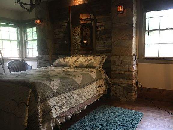 This one is so unique! Unparalleled detailing and creativity throughout. Hand-hewn beam ceiling in living room, hardwood floors, and brick fireplace hearth. Master suite with vaulted ceiling, masonry accents, and jetted tub looking out onto parklike grounds. RV parking over 175' deep to accommodate your boat, RV, work trailer or all of the above. A truly inspired living space inside and out!