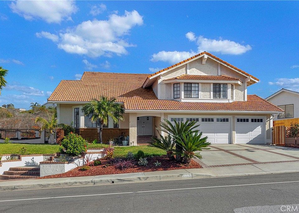 Don’t miss your chance! Rare opportunity for this highly desired neighborhood to include a heated saltwater pool with the largest floor plan. Privacy galore as you only share 1 direct neighbor on your corner lot. French doors welcome you. Vaulted ceilings and 30 ft. windows give breathtaking panoramic views of the hills and valley. The formal dining room will take your breath away. Living and family room is perfect for large gatherings with an entertainer’s kitchen. There is plenty of counter space, cabinets galore, and a large centered island. Ocean view thru bedrooms 2 & 3. Master bedroom retreat offers a relaxing fireplace, office/yoga area, and huge open closet. Master bath/spa retreat with stone floor/ Italian tile in the open rain shower. Soaking tub with skylight perfect for relaxing. 3 car garage with plenty of storage. Hidden space/room on 2nd floor discovered while obtaining blueprints for a room/casita addition. Large lot allows you to expand your outdoor living space as property lines go beyond the walls. Less than a mile to the beach, ride bikes, trails, and more in your own community. Now’s your chance listed below recent appraisal.