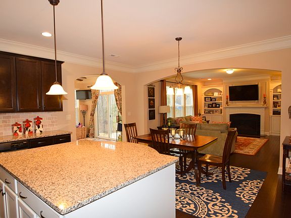 Practically new 2013-built Bonterra Callaway II plan with guest suite and full bath on main. Beautiful kitchen with SS appliances (including gas double oven), gorgeous hardwoods in Study (with French doors), Dining Room, Great Room (with custom built-ins), Sunroom, Kitchen and Breakfast. Home backs up to an expansive wooded area with a custom built stone firepit. Four bedrooms upstairs + additional bed/bonus.