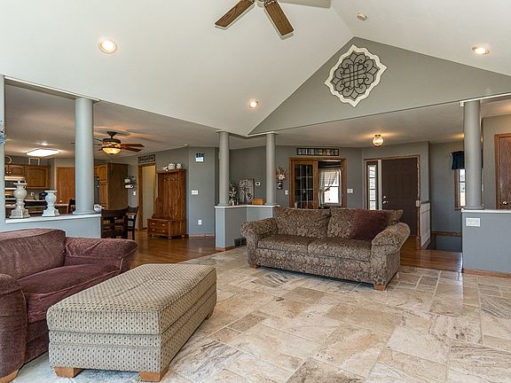Welcome to this well-maintained ranch is located in a country setting. The main level has gorgeous hardwood, stone and tile floors, vaulted ceiling, an office/study, and features a gas fireplace and central vac. Also on the main level are a bedroom, a full bath, a half bath, and convenient laundry. The kitchen features hardwood floors, spacious counters, stainless steel appliances, pantry and breakfast bar. Appliances stay with the home. The master bedroom is located on the main level and features hardwood floors and walk-in closet. The attached master bath includes tile floors, solid surface counters, over-sized tub and tiled shower. The finished lower level features a fireplace in the family room, 2 bedrooms, full bath and storage area. Outside you'll find a composite deck, porch, and patio overlooking the yard with mature trees. Spacious garage features 3.5 stalls with plenty of space for toys and 9' high garage door. Exterior features include a storage shed.