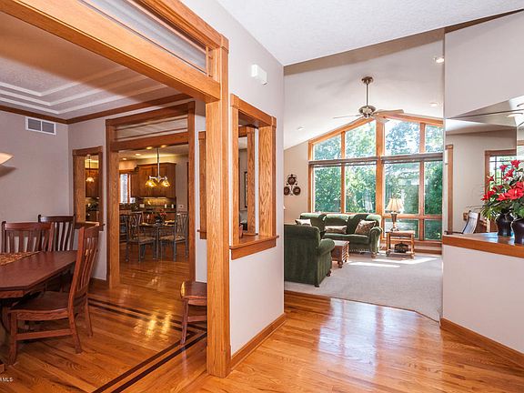 Magnificent 4 bedroom, 3 bath walkout ranch style home located close to Century High School in desirable NE Rochester has what you're looking for. This spectacular home offers a formal dining area with gleaming hardwood flooring and a race track ceiling, gourmet kitchen featuring granite countertops, a grand center-island, nice pantry, built-in desk area, stainless steel appliances, and wood flooring. Enjoy entertaining family and friends in your stately eat-in kitchen area with access to the covered deck that leads to a wonderful additional deck overlooking the backyard. Impressive living room with large windows, vaulted ceiling, and custom built bookshelves with a cozy fireplace. In the master suite you'll love the race track ceiling, double walk in closets, large windows to enjoy the private backyard views, master bathroom with a jetted tub, double vanity, and tiled shower. The lower level features a large family room with a romantic fireplace, walkout to the patio and backyard, 3 large bedrooms with huge closets, nice-sized bathroom, and a great mechanical room with stairs to garage. Additional upgrades in this home include: the duct work in the home has been Aero sealed, newer water heater, garage is insulated, security system, and a water softener. Outside you'll love the mature landscaping, and large backyard., Directions East Circle Drive NE, to Century Valley Rd NE, to Oakview Drive NE.
