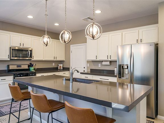 - Description: Breakfast Bar/Counter,Breakfast Nook/Eating Area,Island,Lighting Recessed,Pantry,Quartz Countertops,Stainless Steel Appliances,Tile Flooring,Walk-in Pantry