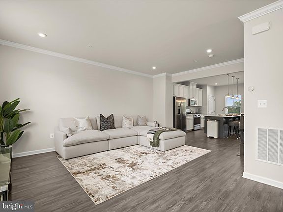 Gorgeous stone-accented townhouse located in the desirable Shaw’s Discovery community, a tranquil private enclave with water access, a community pavilion, a fishing pier, and walking trails. Enter through the lovely foyer with powder room and step into the generously sized family room featuring plush carpet and sliding doors leading to the rear. Upstairs, you'll find a spacious living room with crown molding and bright, sunny windows that highlight the gleaming wood flooring. The charming dining room is bright and leads out to a Trex deck overlooking trees. The kitchen features granite countertops, gas cooking, stainless appliances, ivory shaker soft-close cabinets with pull-out shelving, an island breakfast bar with storage, a pantry, and pendant lighting. The bedroom level boasts a large primary bedroom with a tray ceiling, bright windows, plush carpeting, a walk-in closet, and a primary bath with double sinks and a modern walk-in shower. Two additional bedrooms and a second full bath complete the sleeping quarters. Enjoy the sense of privacy with no neighbors to the back, a tree-lined view, and the convenience of an attached garage and driveway for easy parking. Upgrades include Paint, Flooring and Landscaping