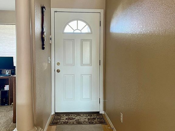 Price Drop! This single-level rancher on a corner lot offers 3 bedrooms, 2 bathrooms, and a versatile front room. The open great room features vaulted ceilings and a gas fireplace, and the kitchen includes Grecian columns and arches. The master bedroom suite has a walk-in closet, step-in shower, and sliding doors to the backyard. A covered front porch and landscaped yard provide outdoor space. A solid home with potential for updates and personalization.