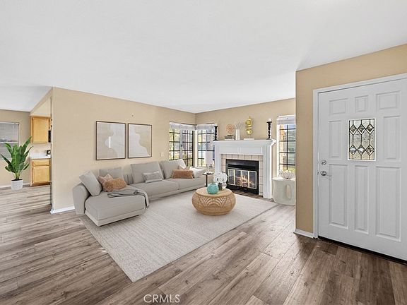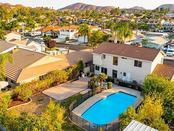 Adorable Pool Home with a huge flat backyard with 3 bedrooms, 2 1/2 baths, loft, living room with fireplace, & almost 1700 square feet across the street from the lake. Cozy living room featuring a wood-burning fireplace with mantel, open kitchen with newly painted white cabinets, stainless steel fridge & dishwasher, & bay window overlooking front yard, kitchen opens up to the dining area with a brand new slider that leads out to the patio and the big backyard & pool. Downstairs also features 1/2 bath that offers a door leading out to the backyard. Newer wood flooring covers the entire main level. Upstairs you'll find a loft with a fireplace that is the perfect family room, TV Room, or office with built-ins. Good-sized primary bedroom with an attached bath with dual sinks & separate room with shower/commode. 2 additional bedrooms; 1 bedroom with built-in desk, and the other with view of the pool. Additional bath upstairs. 2 car attached garage with laundry & storage (Separate room in the garage that can be removed if desired). Driveway offers boat/trailer parking. Private backyard features a fully fenced sparkling pool with BRAND NEW pump. Beautifully landscaped backyard and front yard with fruit trees. BRAND NEW HVAC system. Located on a great quiet street that is across from the lake. Canyon Lake is an exclusive gated and 24-hour guarded community & includes a private lake for boating, skiing, swimming, wake boarding, fishing, paddle boarding, canoeing, + 6-lighted tennis courts, Olympic size pool, beaches, parks, pickleball and basketball courts, club house, senior center, and clubs plus the community offers an 18-hole golf course golf & riding stables. Tax rate is 1% with no Mello Roos.