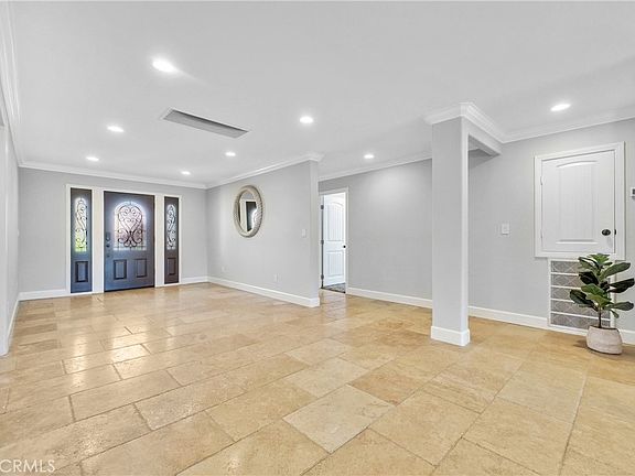Recent enhancements include new doors, sleek crown molding, baseboards, and exquisite flooring with carpet and travertine tile. Practical additions like a whole house fan, solar panels, and a newer pool and spa cater to a comfortable lifestyle while keeping utility costs low.