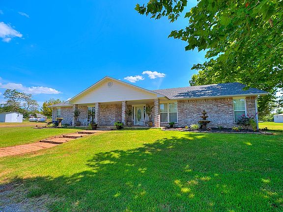 ****Currently under contract.**** This house is located in McLoud, OK, just 18 miles east of Tinker AFB and 12 miles west of Shawnee (minutes from access to I-40). Set on 15 acres, this 2,460 square foot home is perfect for families, entertaining groups, etc. Amenities include: an open floor plan with 10 foot vaulted ceilings; two new zone heat/air units; new water heater; water filter/softener; updated kitchen: ceramic top stove w/two ovens, microwave, dishwasher, granite and sink; updated master bathroom: shower, granite/sinks and toilet; Jetta whirlpool tub in master bath; updated hall bathroom: granite/sink and toilet; fresh paint inside; pantry; built-in bookcases in office; and a large covered patio. Additionally, there is an eight-person above ground storm shelter located in the garage (garage has been “finished” with extra insulation/trim; could easily be converted to an add’l room with minimal cost). The pasture is also fenced on three sides with cross fencing. For additional storage or hobbies, a 30 x 50 workshop, a 20 x 30 shed barn, 20’ x 22’ carport, two water wells and a 20-fruit bearing tree orchard are all located on the 15-acre property as well. Located two miles from grocery store, restaurants and other conveniences at I-40 and McLoud Rd. *Call/text. Open house every Sat/Sun 1-5pm or other showings by appt. MUST wear mask. **Appraisal as of Oct 2020.