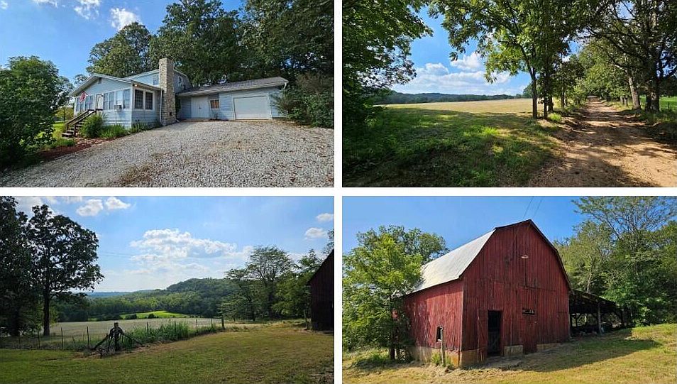 Charming farmhouse on 20+/- acres in Douglas County for sale! Located near Drury, this 2 bedroom, 1 bath home has beautiful views, a tree lined driveway, park-like yard, and an awesome red barn. The home and barn were built in 1940, but there was a new well drilled in 2013. There is also a storm shelter/cellar, a small storage/shop area, and an old chicken house. The house has an attached 1 car garage, workshop area, and a small room off the back porch that is used for freezers. There is an enclosed front porch, and inside you'll find an open concept living room, dining room and kitchen, as well as the bathroom/laundry room, with the 2 bedrooms upstairs. The rough sawn timber is beautiful! The property is about 50/50 open ground and woods. There is partial perimeter fencing, and you could fence off the open ground for pasture, but it is currently used for hay. This is such a pretty and private location!25 minutes to Mountain Grove, 35 minutes to Ava, 1 hour 25 minutes to Springfield, 3 hours 20 minutes to St. Louis, and close to the many rivers, lakes and sights that the Missouri Ozarks has to offer!