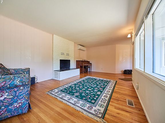Super Cute 50's Ranch in Convenient South Eugene Location! Features hardwood floors, great floor plan, living room w/ wood burning fireplace & wall of windows, kitchen w/ dishwasher & fridge. 2 beds & 2 updated baths on main lvl, 1 bed up. Mud rm w/ French door, 1-car garage, W/D incl. Newer ductless heat pump, brand new exterior paint, newer roof. Sunny backyard w/ garden beds. Close to shopping, Amazon park, Hideaway bakery, LCC & UO.